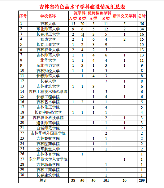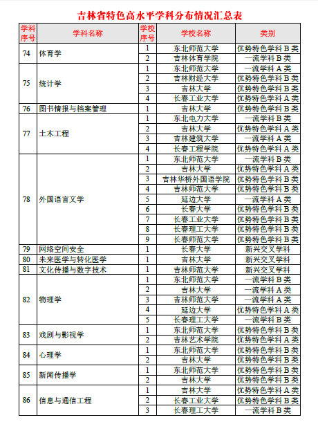 附件:吉林省特色高水平学科专业建设情况汇总表.pdf
