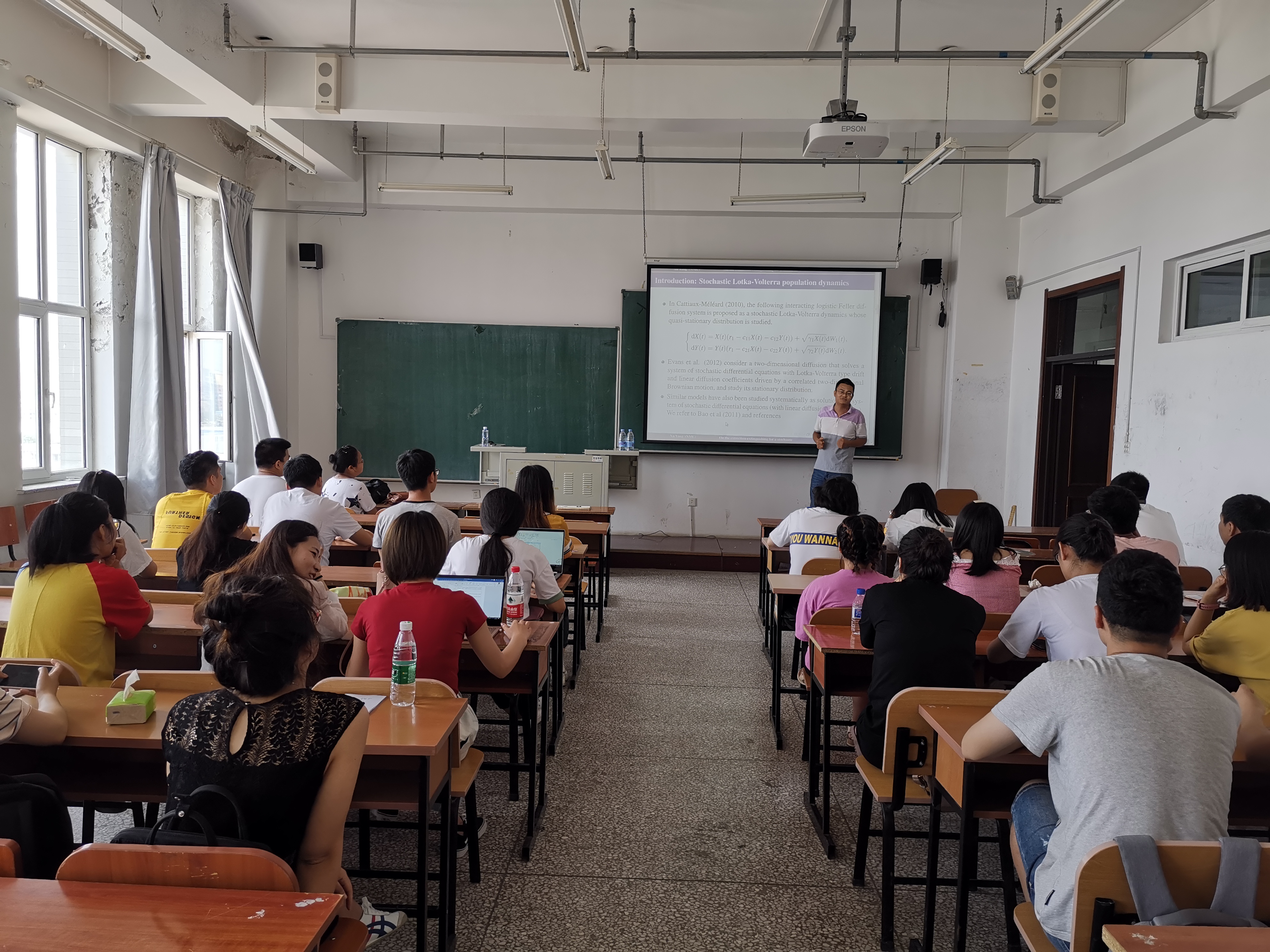 在报告中,杨叙教授从“On the extinction-extinguishing for a stochastic Lotka-Volterra type population dynamical system”具体的文章内容出发,介绍了所用到的一些基础的理论、一些文章细节上推敲的过程,和最后实验结果。用幽默风趣的语言展示了生物医学方面统计数学方法的应用,将自己的亲身经历和人生感悟分享给与会人员。报告结束后,与会人员踊跃提问,就感兴趣的问题与杨叙教授进行了广泛的讨论和交流,杨叙教授就提出的问题进行了详细的解答,分享了自己的心得。