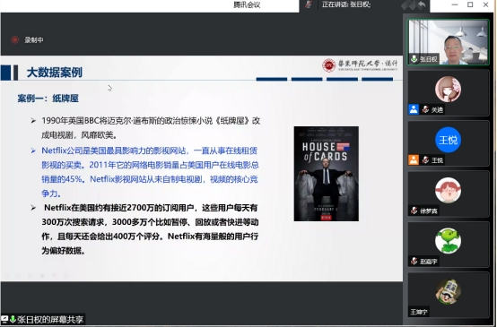 会后,张日权教授与参会师生进行互动,气氛活跃,热情高涨。本次线上报告会有助于全体数统学院师生深入了解统计学与大数据应用的相关内容,讨论了有关于与企业合作项目中遇到的一些问题,同时也详细解答了分布式储存的相关问题。张日权教授的报告开阔了师生的学术视野,拓宽了科研思路,对于免费A片