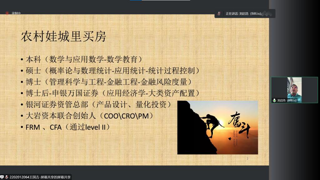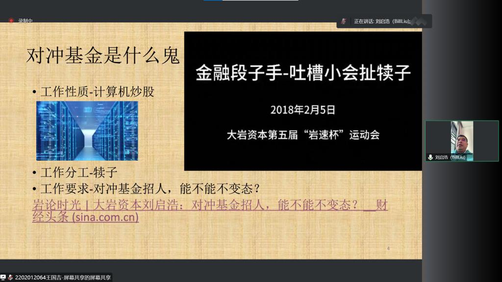 主办的报告——“非正态之路”在腾讯会议线上举行,特别邀请刘启浩博士作为主讲人,基于刘博士本人的研究以及工作经历,为免费A片