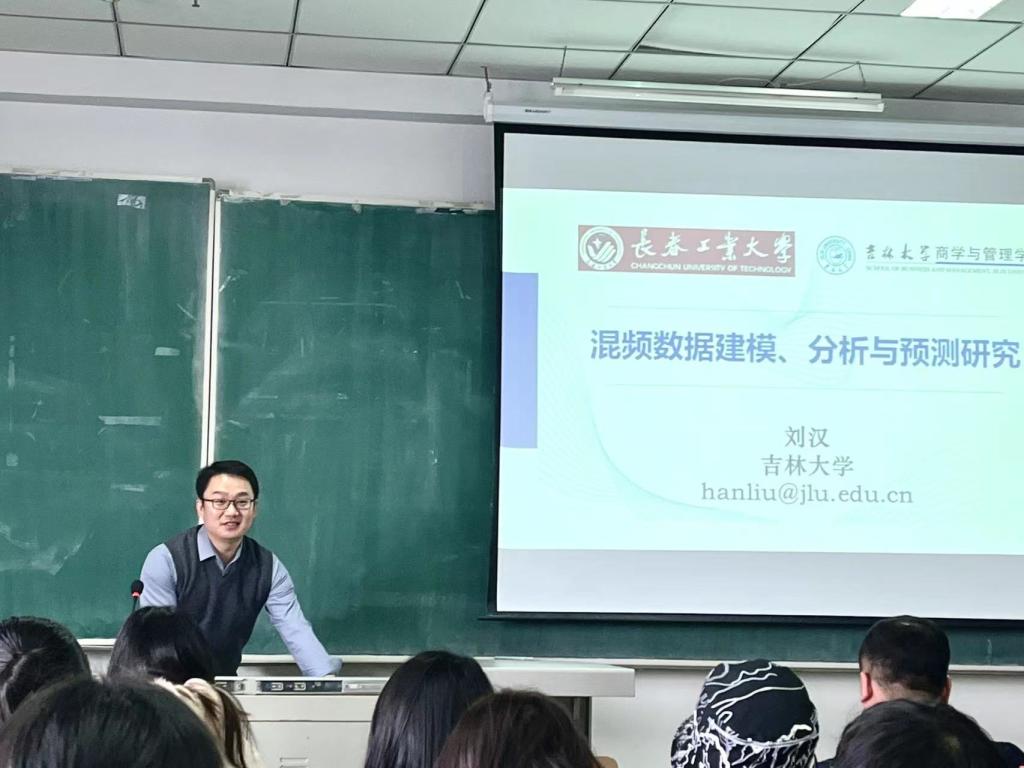 报告会结束后,大家针对混频数据建模产生了浓厚的兴趣,老师及同学向刘汉教授踊跃提问交流,其中韩教授针对同学提出的关于MIDAS模型的问题做出耐心解答,拓展了老师和同学们的学术视野,激发了同学们的学习热情,使老师和同学们对混频数据建模等有了更深的理解,与会师生都表示受益匪浅。