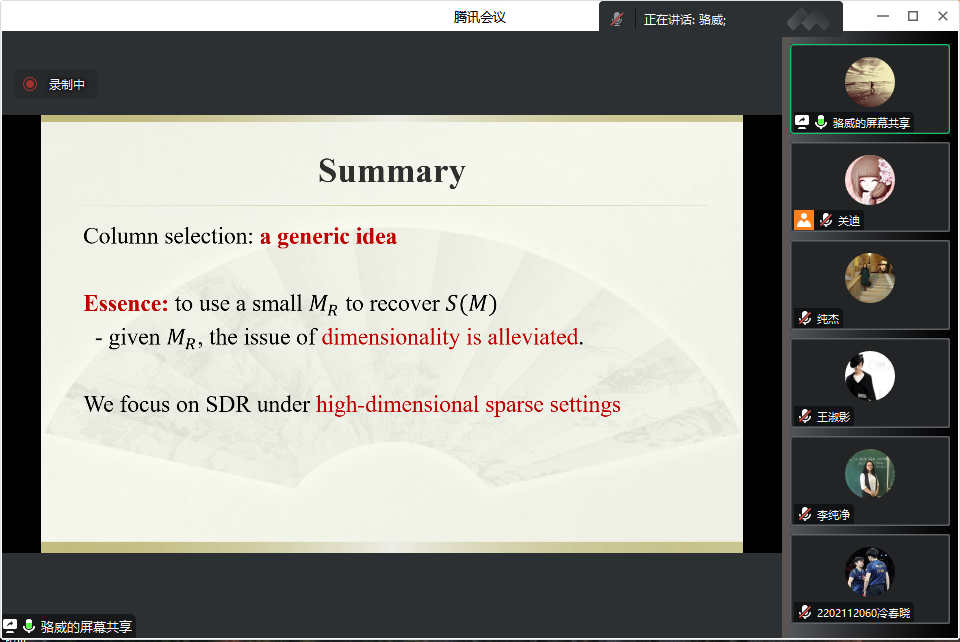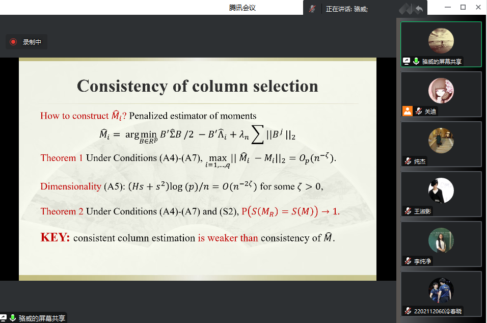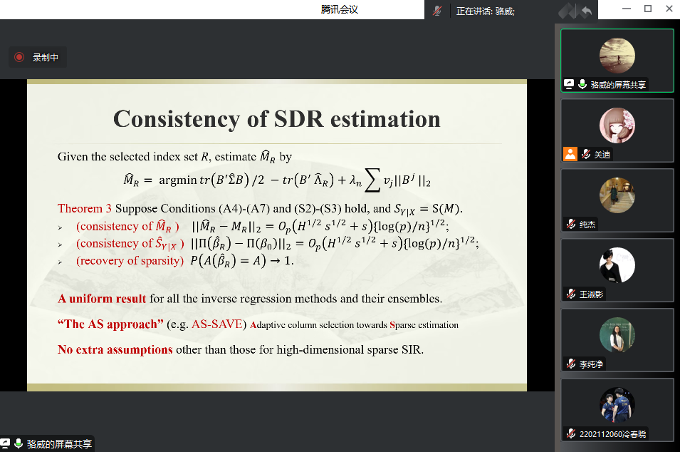 主办的报告——“A unified generalization of inverseregression via adaptive column selection”在腾讯会议线上举行,特别邀请骆威老师作为主讲人,基于骆威老师本人的研究以及工作经历,为免费A片