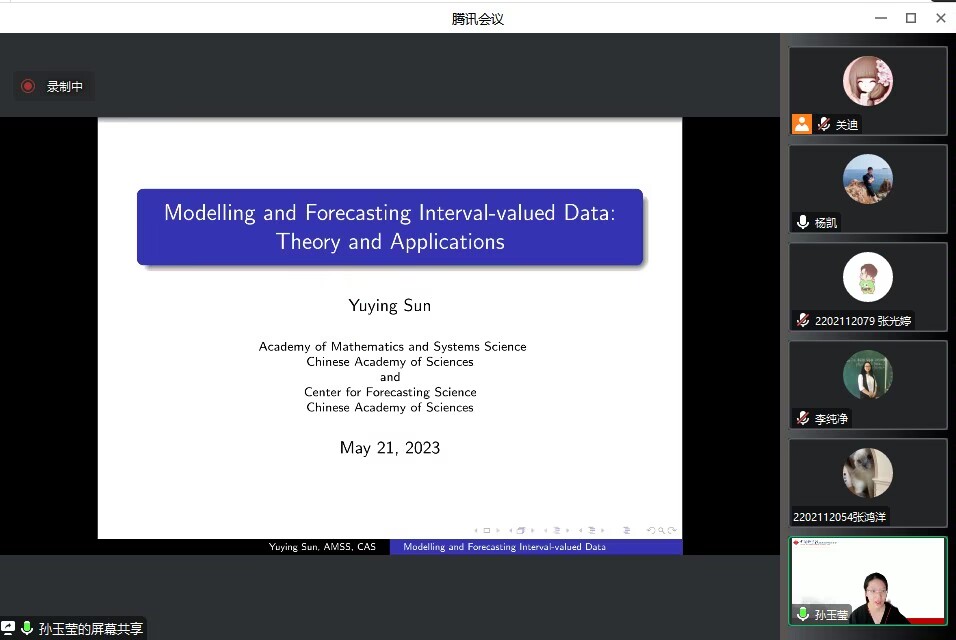 主讲人介绍:孙玉莹,中国科学院数学与系统科学研究院副研究员、博士生导师。第6届中国科协“青年人才托举工程”入选者。研究兴趣主要有计量经济学、经济预测理论与方法等。多篇研究成果发表在Journal of Econometrics, European Journal of Operational Research, Journal of Travel Research, Energy Economics等国际权威期刊;多篇政策研究和疫情预测报告得到国家领导人批示或被中办、国办采用。曾获中国科学院数学与系统科学研究院“重要科研进展奖(2017,2019)”、关肇直青年研究奖、中国管理科学与工程学会优秀博士学位论文奖等。