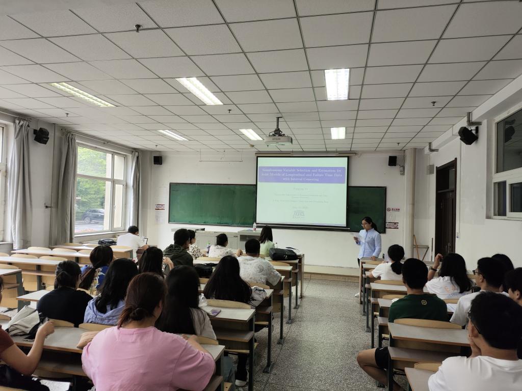 统计系主任杨凯、统计系党支部书记袁晓惠、统计系副主任王淑影、学院部分老师和研究生参加了本次报告会,报告由统计系副主任王淑影老师主持。