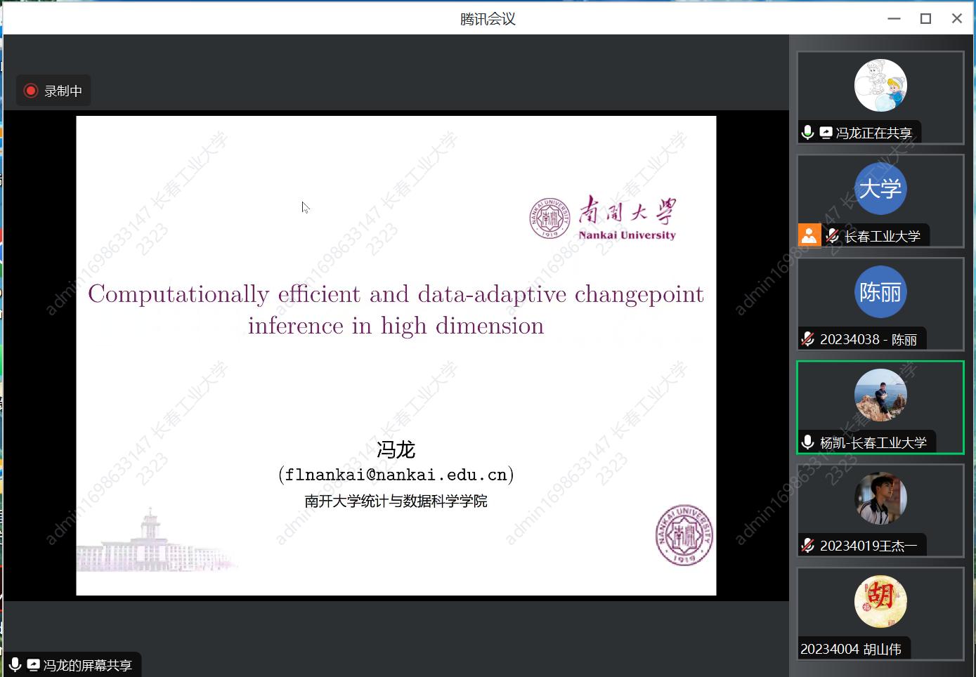 (通讯员:关迪)2023年11月14日(星期二)下午15:00,我院邀请南开大学统计与数据科学学院冯龙研究员做学术报告,报告由学院副院长杨凯副教授主持,全体研究生和全体本科生参加了本次线上学术报告会。