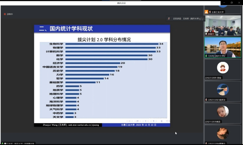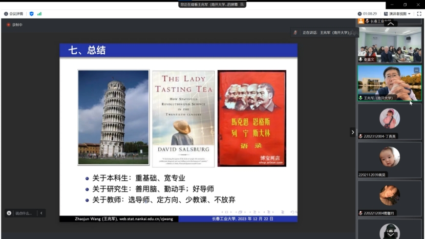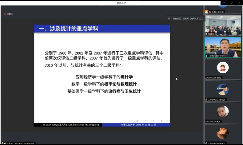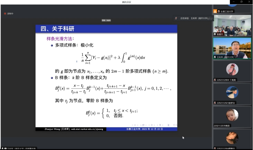 统计系主任王淑影副教授以及学院部分老师、研究生参加了本次线上学术报告会。会议由大数据科学研究院院长兼学科建设办公室副主任秦喜文教授主持。