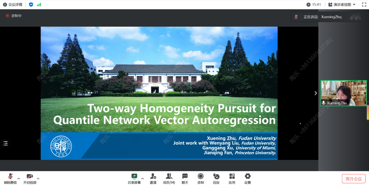 报告结束后,朱雪宁教授就老师和同学们提出的问题进行了耐心的解答,并鼓励大家积极思考和探索新的研究思路。本次学术报告不仅拓宽了师生们的学术视野,也激发了同学们对时间序列分析领域深入研究的兴趣。