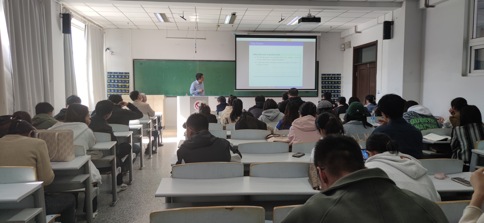 艾教授通过细致又准确的讲解,使得同学们对数据流的子抽样算法有了更深的了解。对于现在正在研究抽样算法的同学具有很大的帮助。报告会后,老师和同学表达了对该方向浓厚的兴趣,与艾教授充分的讨论了对于不同模型关于子抽样算法的的相关疑问,艾教授也对相关的疑问做了充分解答。通过此次报告会,扩充了同学们对子抽样算法的认识与了解,让同学们大受启发。