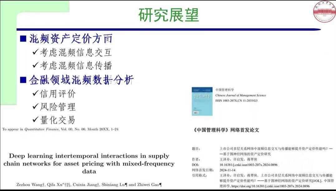 许启发教授在金融资产定价领域的研究主要集中在基于混频机器学习方法的应用。这种方法结合了不同频率的数据(例如,高频交易数据与低频宏观经济指标),利用机器学习算法来捕捉数据中的复杂模式,从而提高金融资产定价的准确性。