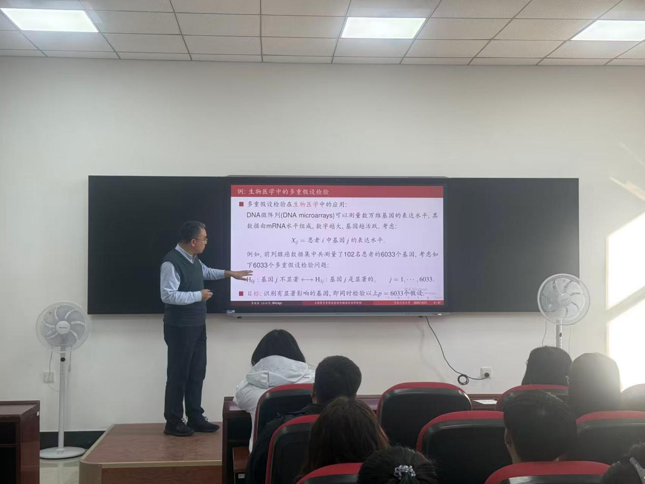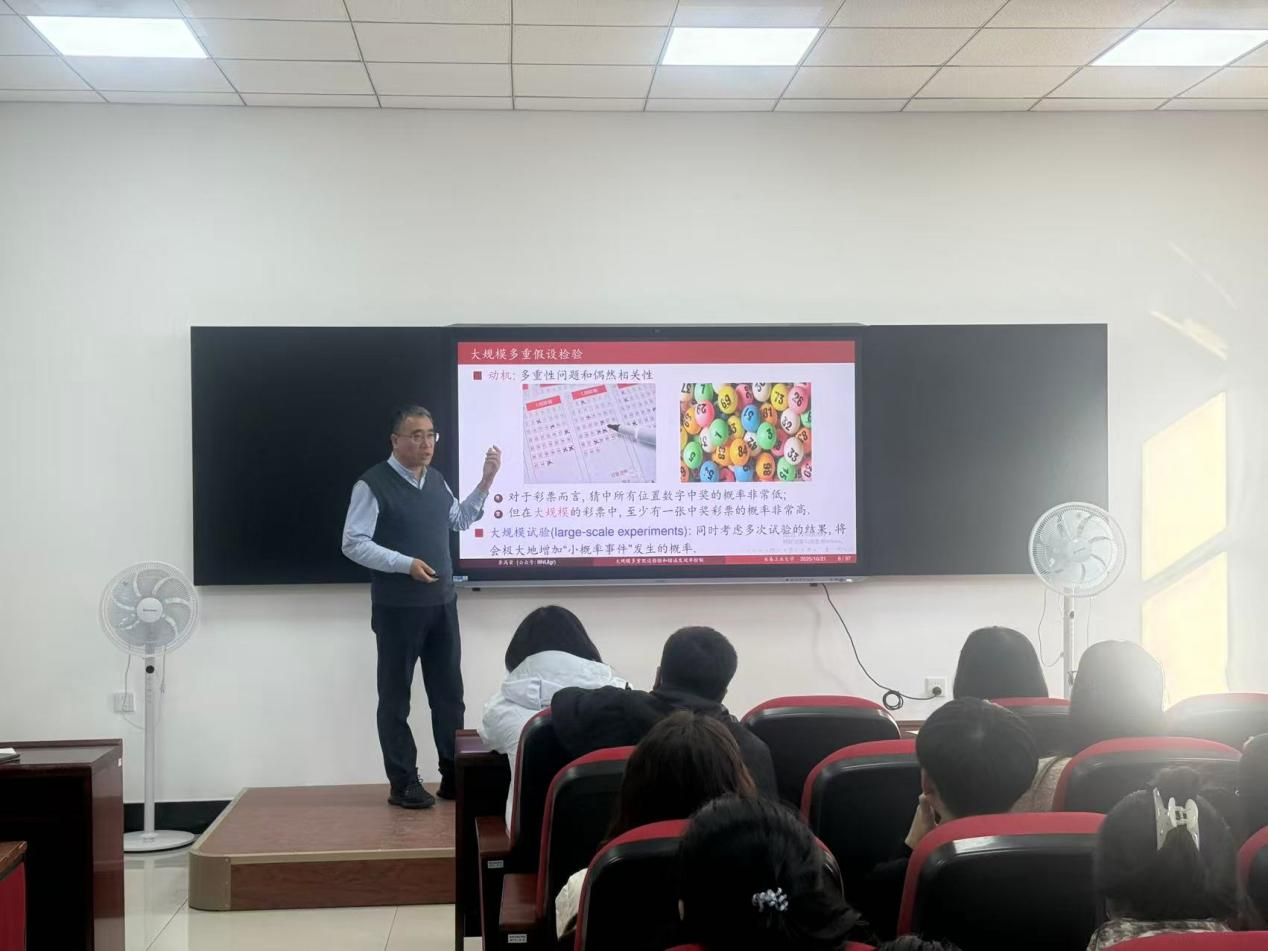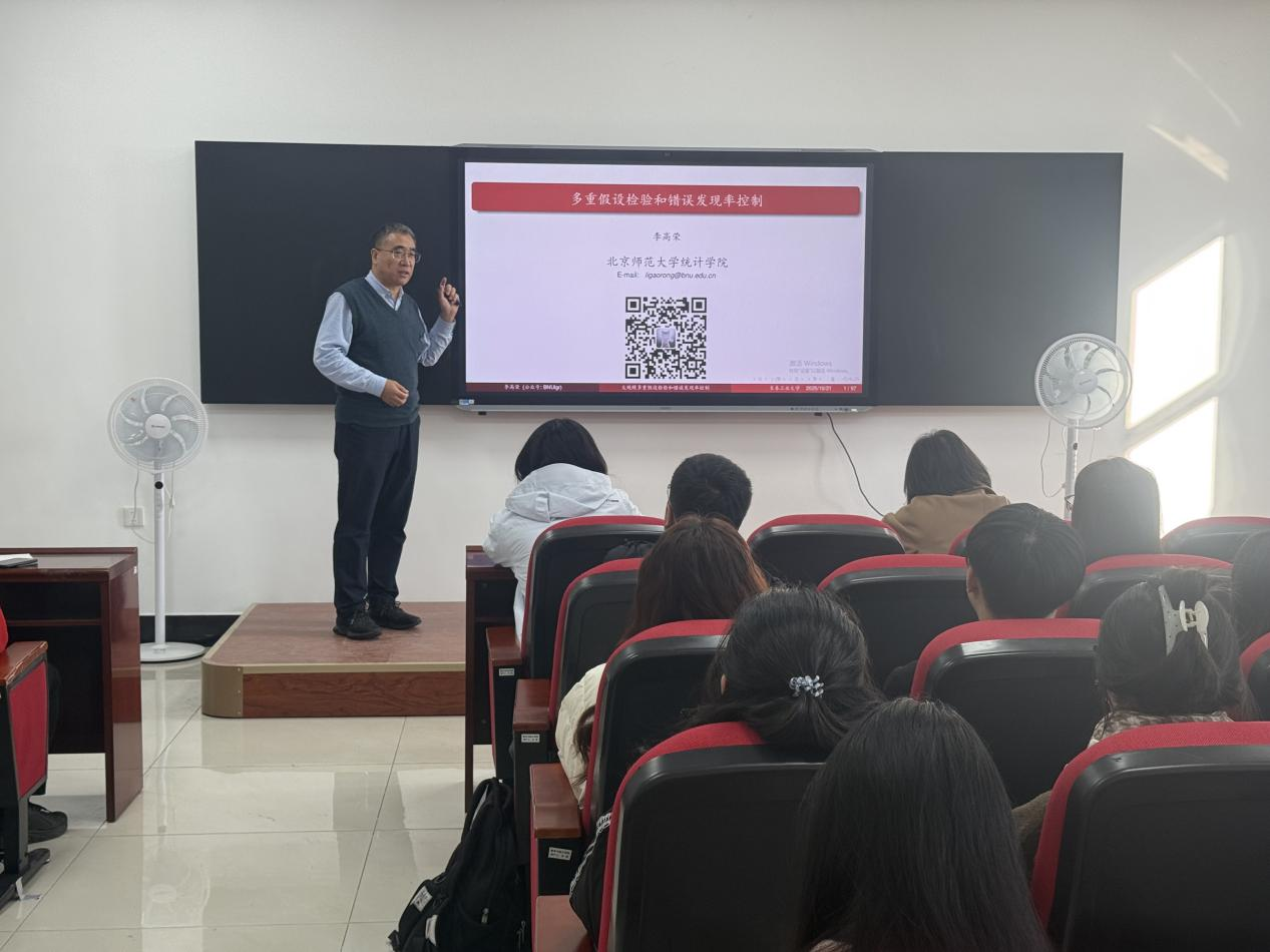 在报告的最后环节,李高荣教授梳理了该领域的未来研究方向,包括高维非线性模型的FDR控制、复杂相关结构下的方法鲁棒性优化等,并分享了团队在《Journal of the American Statistical Association》《The Annals of Statistics》等期刊发表的相关成果,以及编写《统计学习(R语言版)》等教材的经验,为在场师生提供了理论学习与实践应用的双重指引。