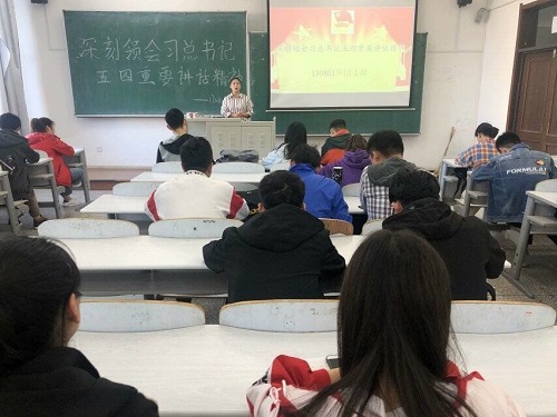 团委于2019年5月24日开展了以“深刻领会习近平总书记在纪念五四运动100周年大会上重要讲话精神”为主题的团课。17级全体团员参加本次团课学习。