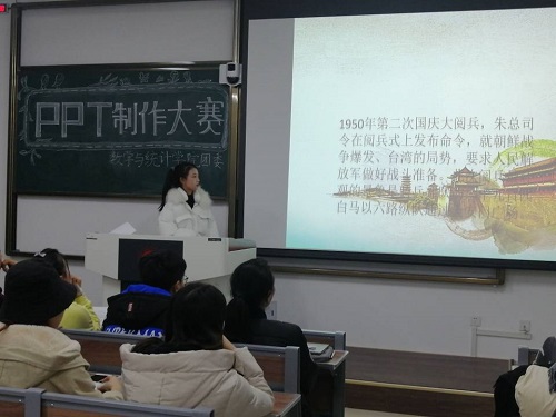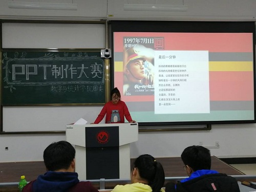 于2019年11月20日在主楼232教室举行了“PPT”制作大赛。参赛选手来自我院大一、大二两个年级,历年在此赛中获奖的高年级部分学生担任比赛评委,本次大赛由2019级学生申天勋、宋佳主持。