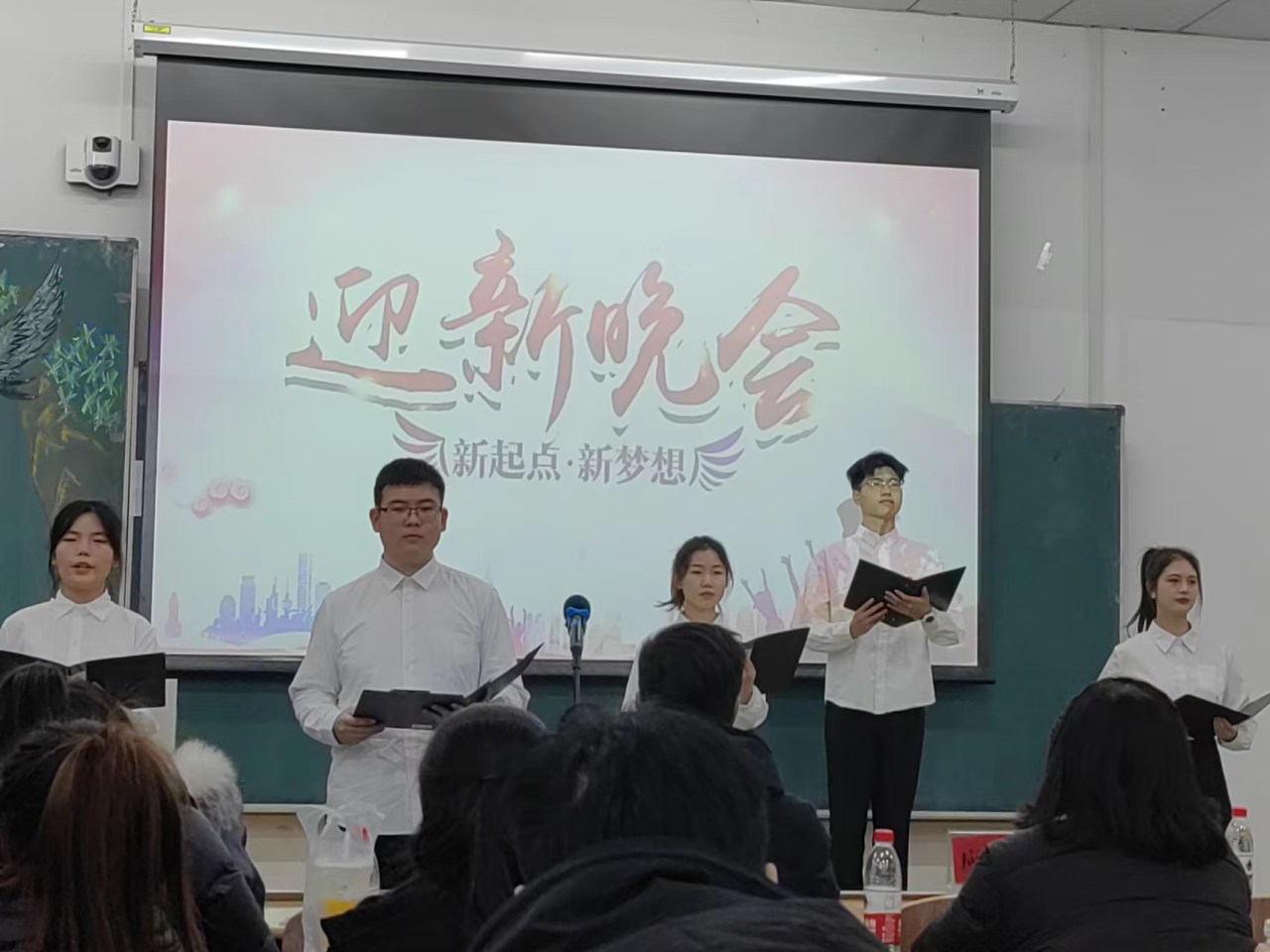 研究生代表、大二学生代表以及全体大一学生参与本次晚会。本次晚会由迟雯博、侯佳琪、陈青言、赵子茉担任主持。
