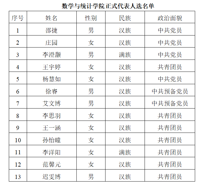 根据《共青团免费A片 第二次代表大会代表选举工作办法》,经学院团员大会差额选举,现将学院团委选举产生的共青团免费A片 第二次代表大会正式代表人选进行公示: