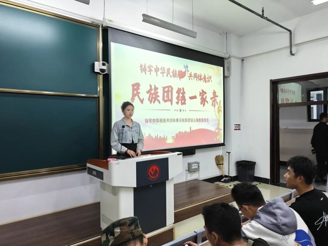 于2024年9月16日晚在北湖东区主楼215、232教室开展了“民族团结一家亲”主题会议,本次会议由范馨元主讲,全体大一新生参会。