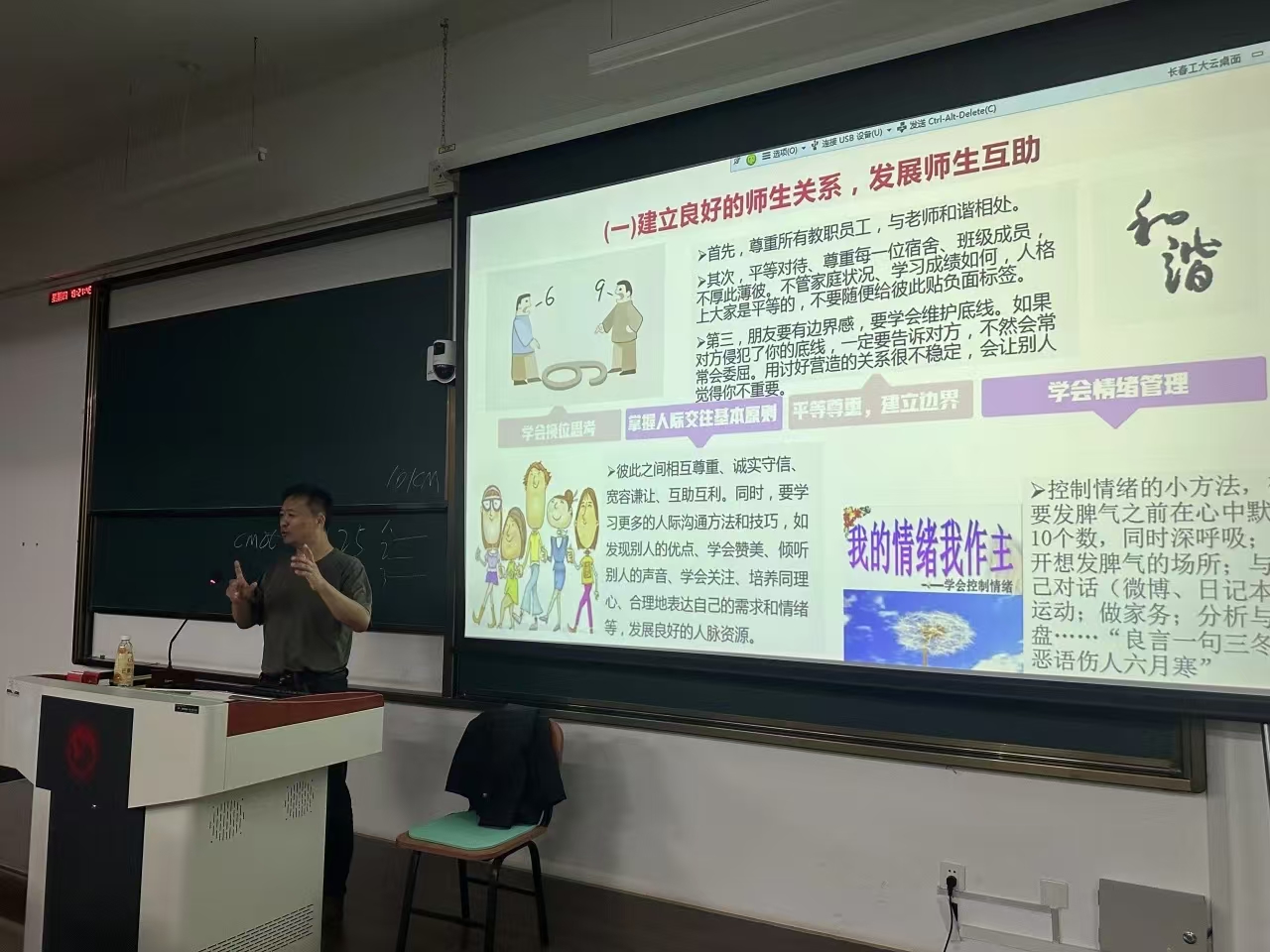 赵君老师分别从新生的入学适应、大学生人际交往、自身情绪管理以及心理咨询四个方面进行了详细讲述,并且通过生活中的一些案例,向同学们深入刨析了心理健康的重要性。