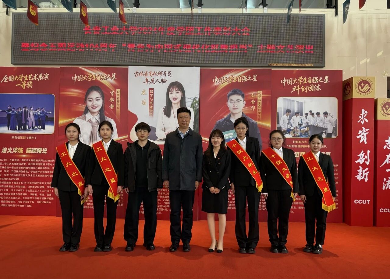 2022级王一涵获评“十佳优秀大学生”荣誉称号,2022级孙怡瞳获评“十佳自立自强大学生”荣誉称号和“工大之星—自强标兵”荣誉称号,2022级李思羽获评“工大之星—学干模范”荣誉称号,2022级曹馨月获评“工大之星—创业先锋”荣誉称号,2022级关敏雪获评“工大之星—文明使者”荣誉称号。
