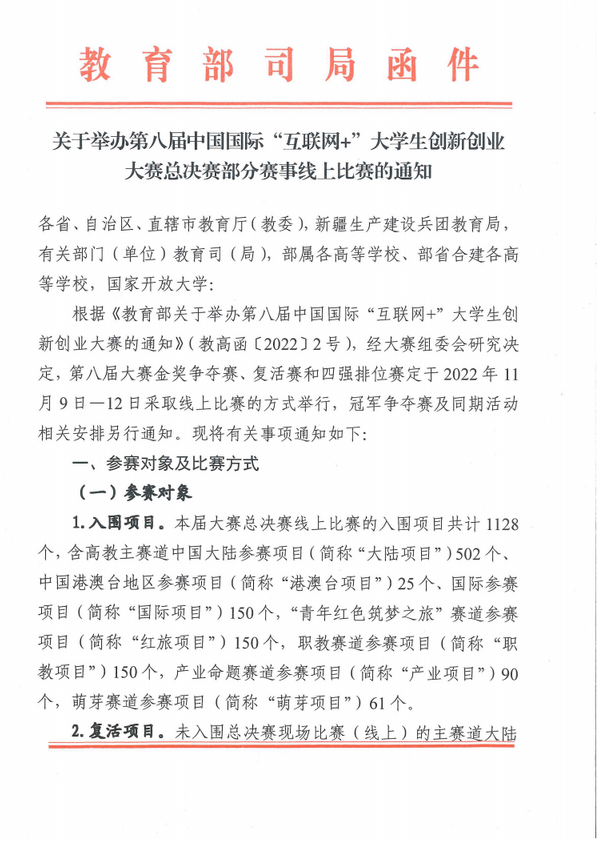 第八届互联+大赛部分赛事线上比赛的通知