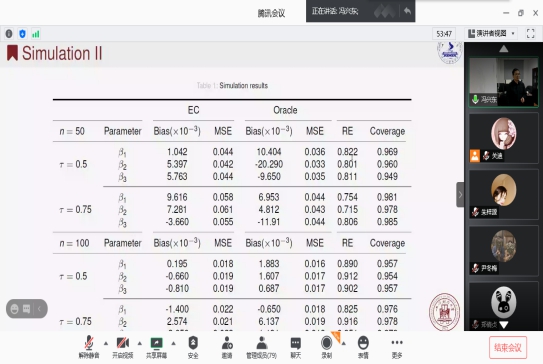 本次学术交流会拓展了同学们的学术视野,也激发了同学们的学习热情,更加努力学习研究新的领域与方法,并使老师和同学们对分位数有了更深的理解,聆听报告的师生均表示受益匪浅。