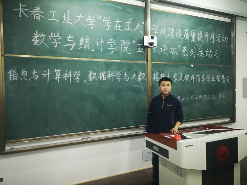 于2019年12月4日在北湖东区教学主楼446教室和452教室,分别举办了两场专业教师指导学业报告会,报告会由应用数学系主任刘铭,统计系主任李纯净主讲,2017届,2018届和2019届全体学生参加本次报告会。