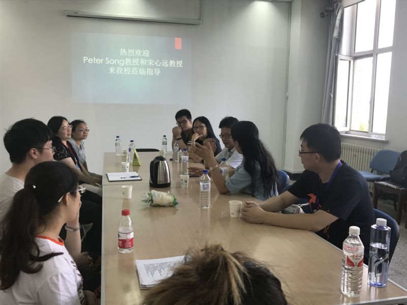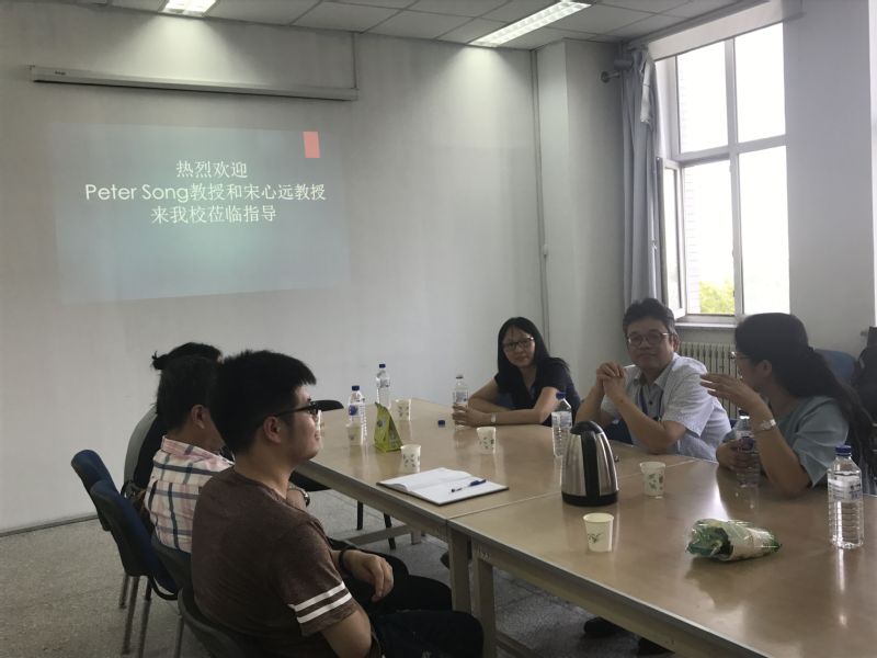 4727室香港中文大学宋心远教授、美国密歇根大学PeterSong教授莅临我院做指导。会议由学院副院长王纯杰支持,学院副院长徐平峰、学院部分老师、研究生、及本科生和其他学院师生参加了会议座谈。