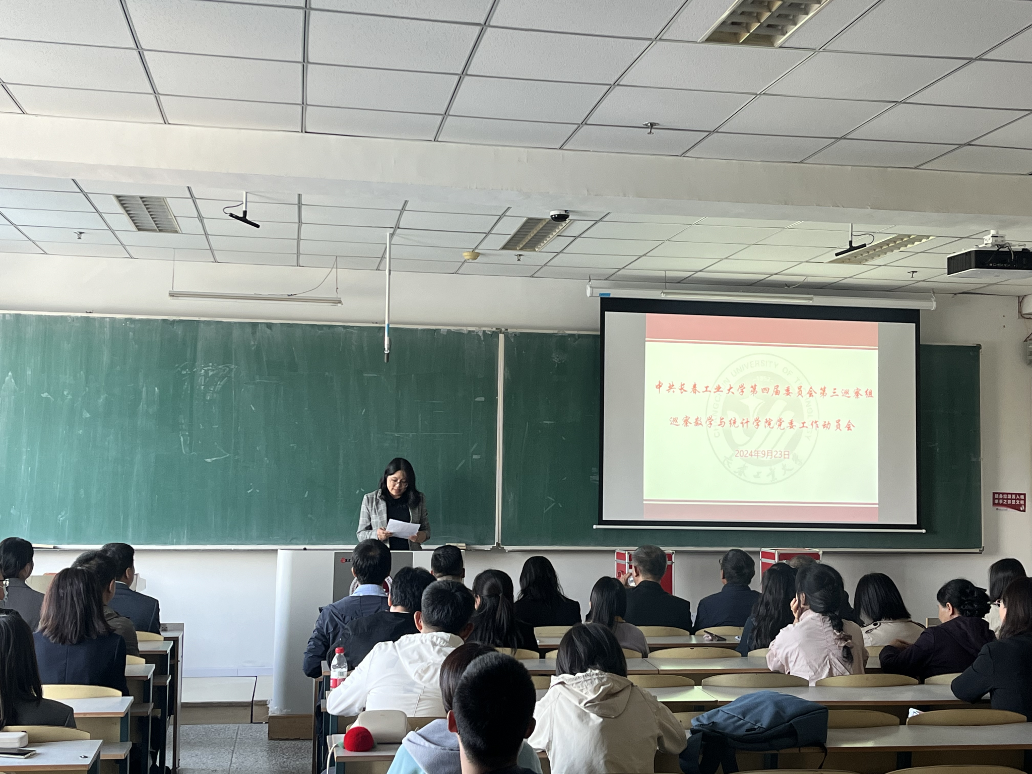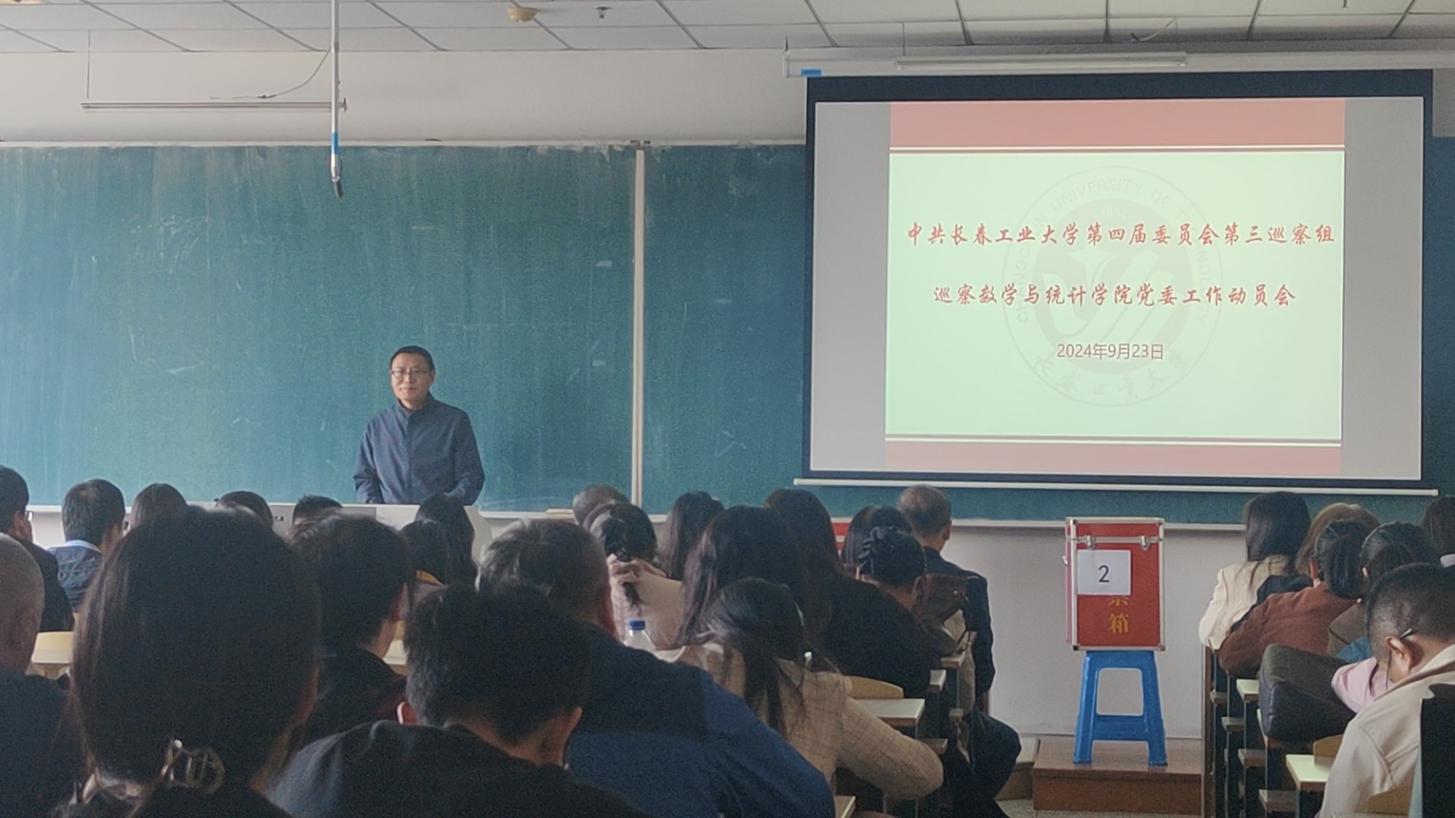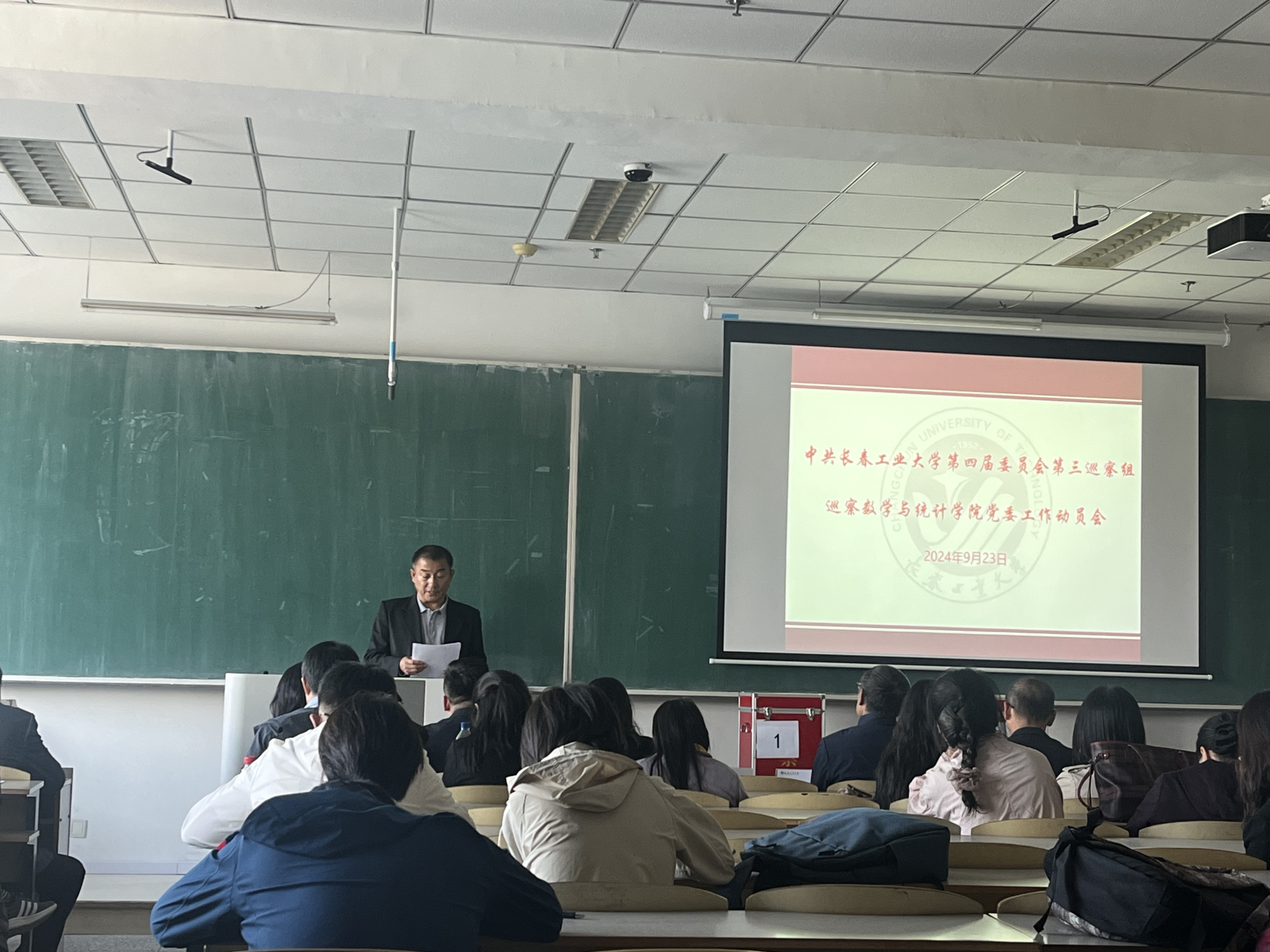 第三巡察组副组长及其成员,学院领导班子成员、纪检委员、科级以上干部、党支部书记、教授、党外人士代表、教师代表和学生代表等出席会议。