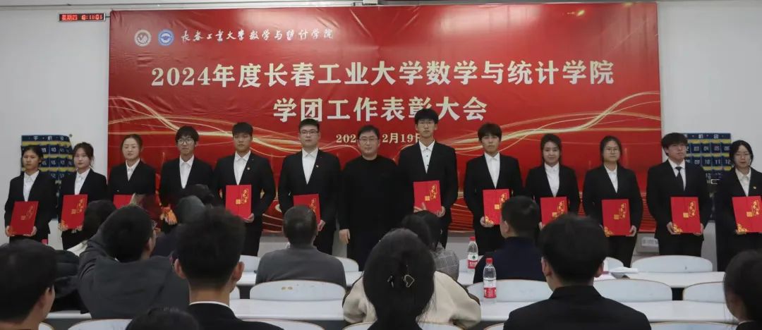 团委讯(通讯员:唐梦然 赵子茉)数学与统计学院于2024年12月19日在艺术楼二楼阶梯教室隆重举行2024年度学团工作表彰大会。学院党委书记王丹、院长王纯杰、副院长刘铭、党委副书记刘晓欣、副院长杨凯、党委副处级专职组织员应艳、统计系党支部书记袁晓惠、应用数学系副主任夏超以及学院学生工作办公室全体辅导员出席了本次大会。会议由学院团委书记庄园主持,获奖学生代表及2023级和2024级学生代表参加会议。