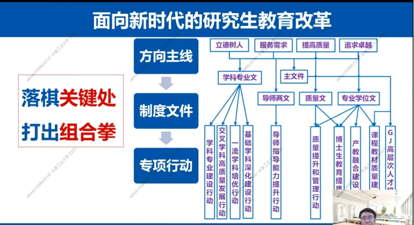 课程教材建设质量提升行动:发布《研究生核心课程指南》,推进研究生课程思政,推动“四个一批”建设。