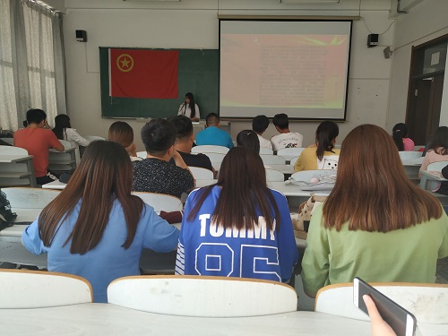 团委于2019年6月29日在教图楼309教室开展“学习筑梦”系列活动之“推进马克思主义中国化时代化大众化”主题学习会,本次会议由宣传部副部长刘芙蓉主持,2017、2018级主要学生干部参加了此次学习。