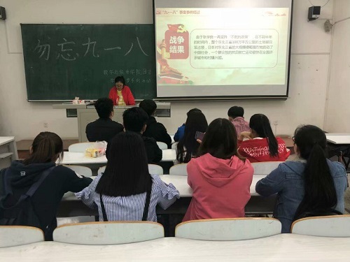 团委于2018年9月18日在教图楼309教室开展“学习筑梦”系列活动之“勿忘九一八”会议。学院2017级主要学生团干部参加本次会议,团委副秘书长崔仕贤担任会议主讲人。