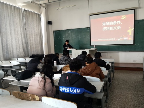 林园校区教图楼613教室组织了2018年第六期党课理论培训。本次培训由学生会主席马壮主讲,院本科和研究生的21名入党积极分子参加本次党课学习。